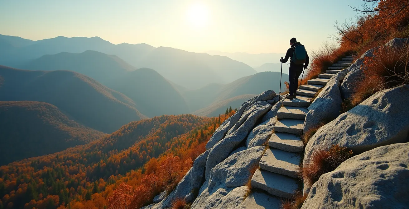 For many urban walkers, the thought of hiking Mont-Tremblant conjures images of beautiful fall colours and a rewarding physical challenge. You pack your bag, grab some water, and assume that if you’re fit enough for a long city walk, you’re ready for the mountain. This assumption is the first step toward a painful knee injury. The common advice—”wear good boots” or “pace yourself”—barely scratches the surface of what your joints will endure. The reality is that the mountain’s steep grades and, most importantly, its unforgiving terrain composed of hard Laurentian granite, present a specific biomechanical test that city legs are often not prepared for.